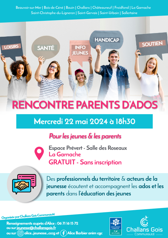 RENCONTRE PARENTS D’ADOS – Le 22 mai 2024 à 18h30 à La Garnache